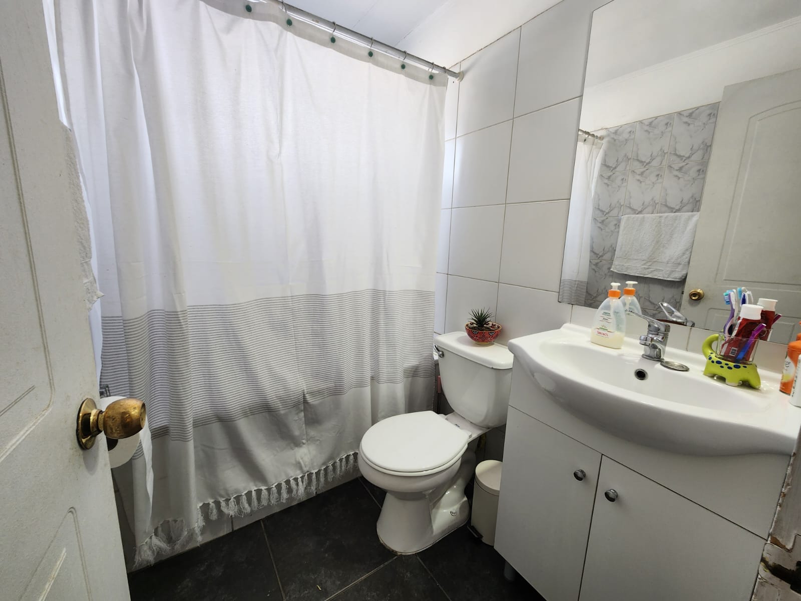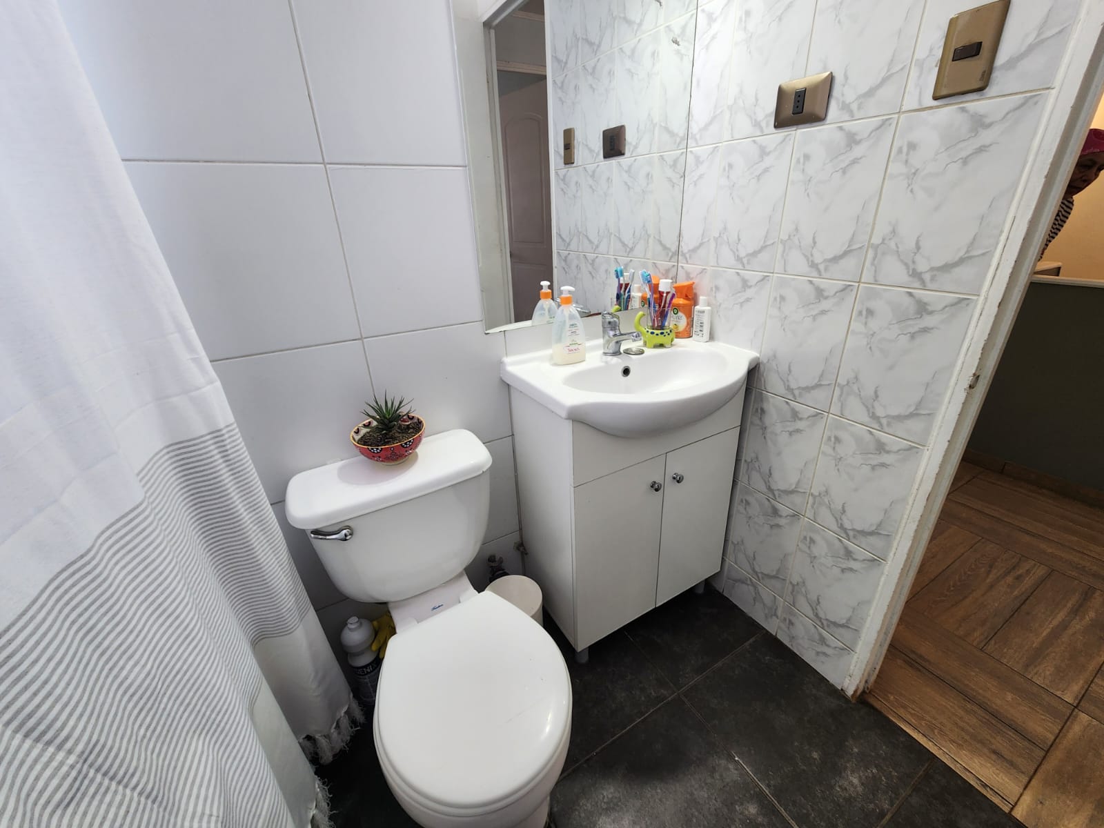 2 baños completos con cerámica, uno en suite, más baño de visita.
