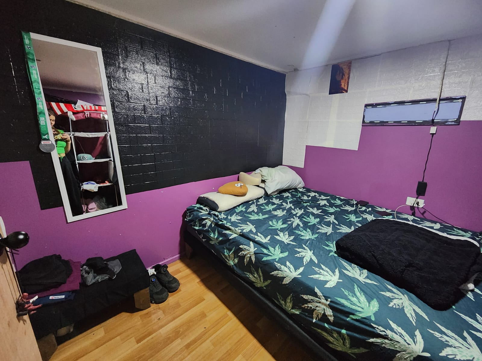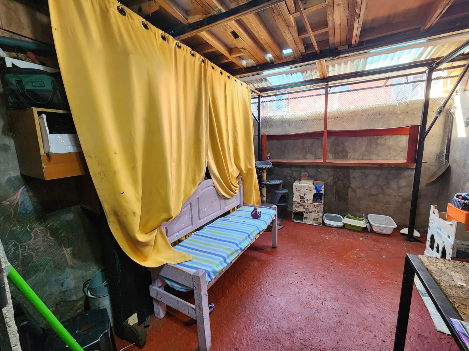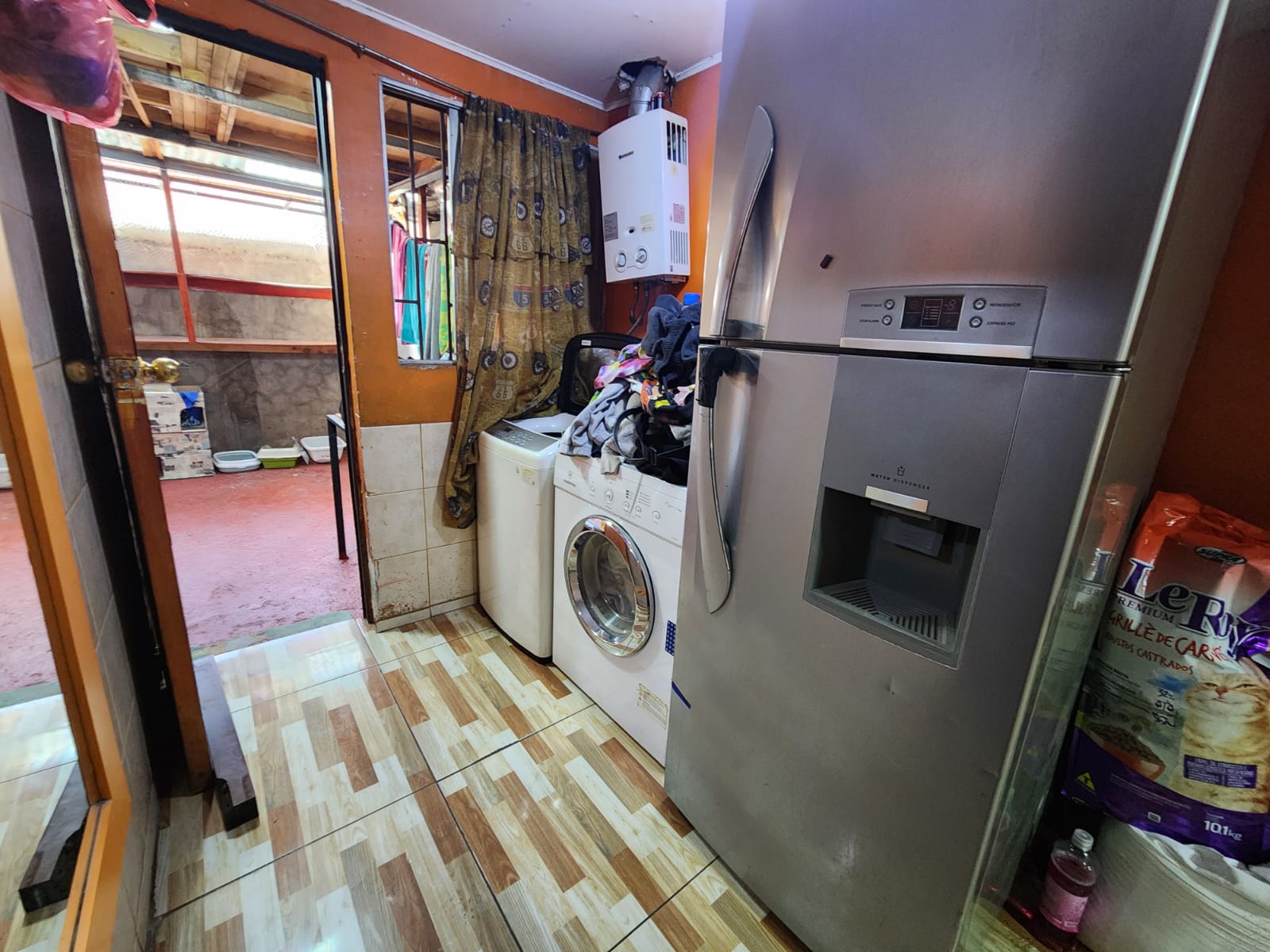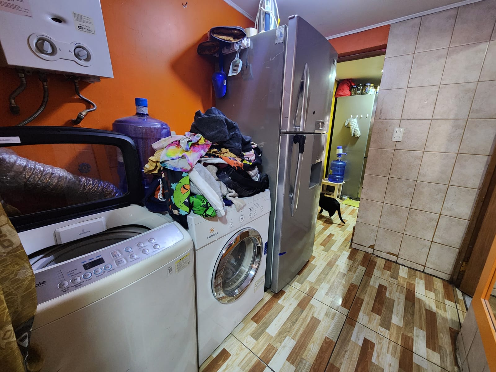 Patio/ bodega, conexión a lavadora, calefont. Jardín techado.